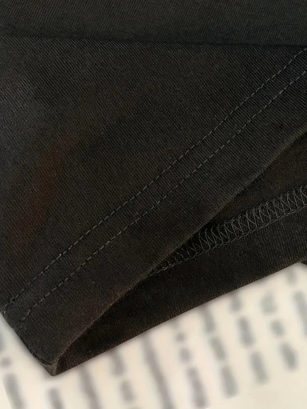 Rahat Bisiklet Yaka Tişört, Yaratıcı Karikatür Baskı - Yumuşak Polyester, Her Mevsim Giyilebilir- Siyah