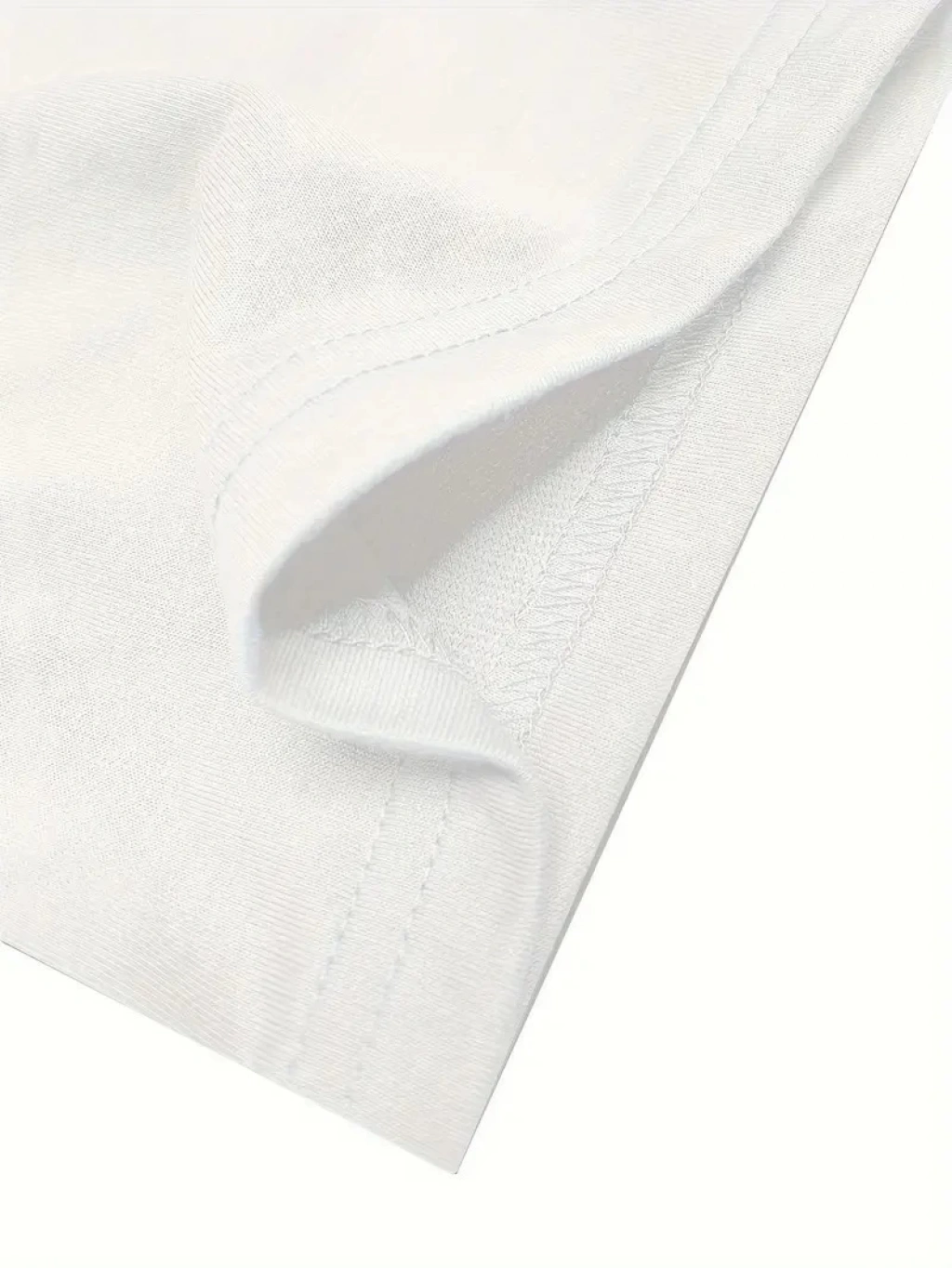 Eşsiz Baskı Tasarımlı Şık Büyük Beden Erkek Tişörtü - Rahat Polyester, Makinede Yıkanabilir, Yuvarlak Yaka - Her Mevsim İçin Mükemmel - Beyaz