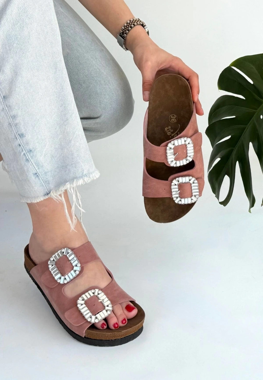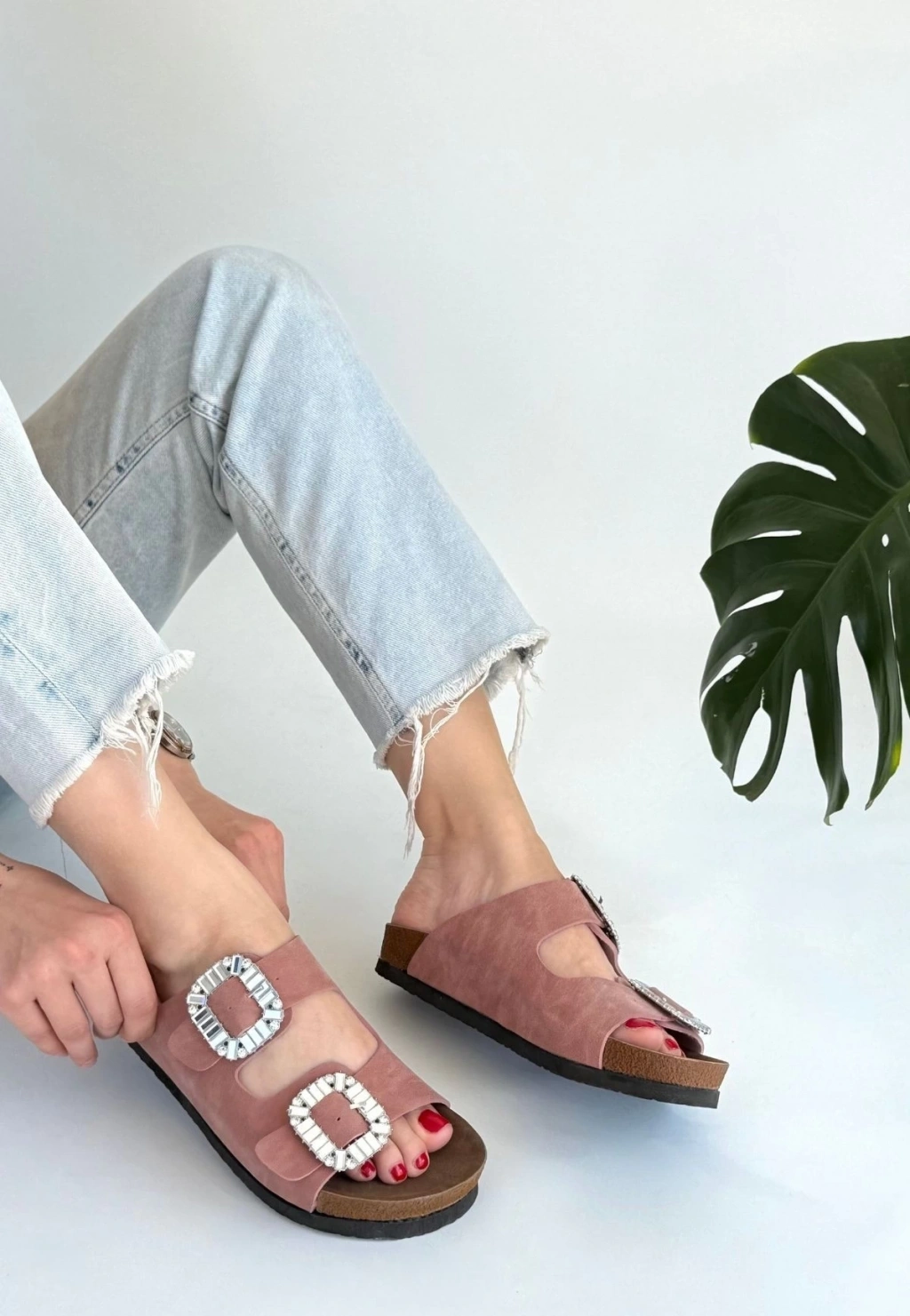 Loera Pemba Nubuk Çift Tokalı Terlik