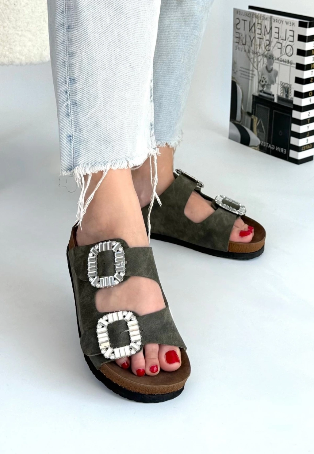 Loera Pemba Nubuk Çift Tokalı Terlik