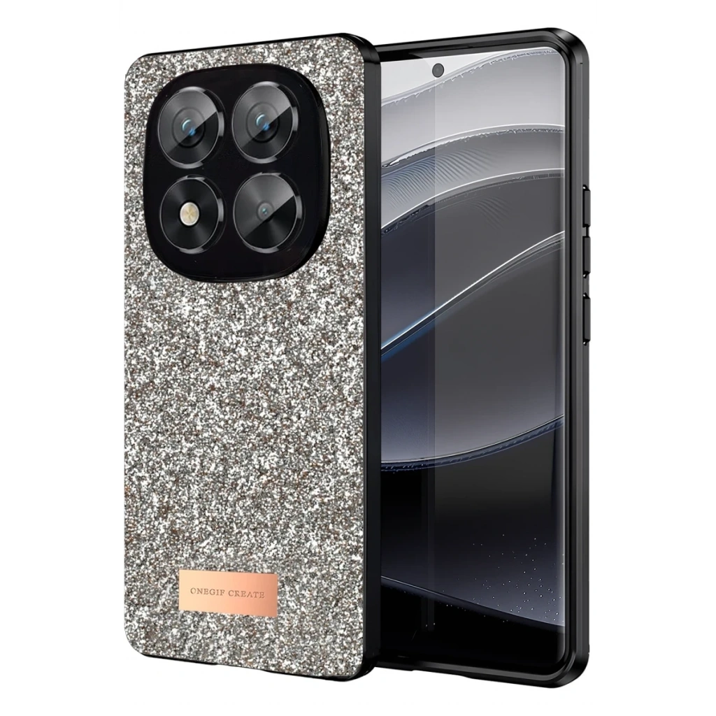 Onegif Xiaomi Redmi Note 14 Pro 5G Bright Simli Kapak - Gold