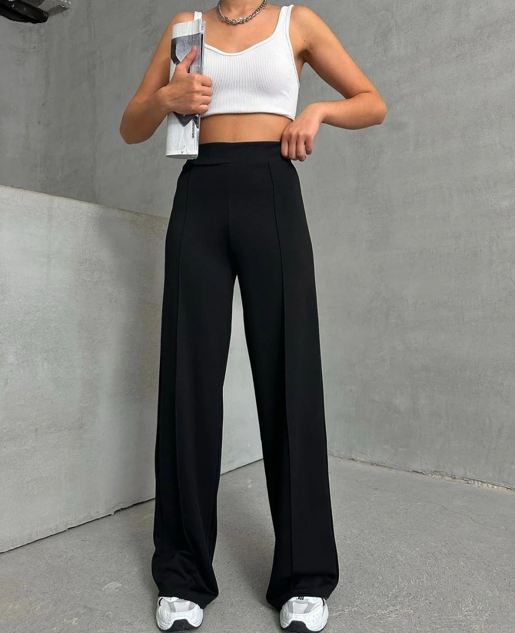 Cırtlı pantolon krep siyah pt