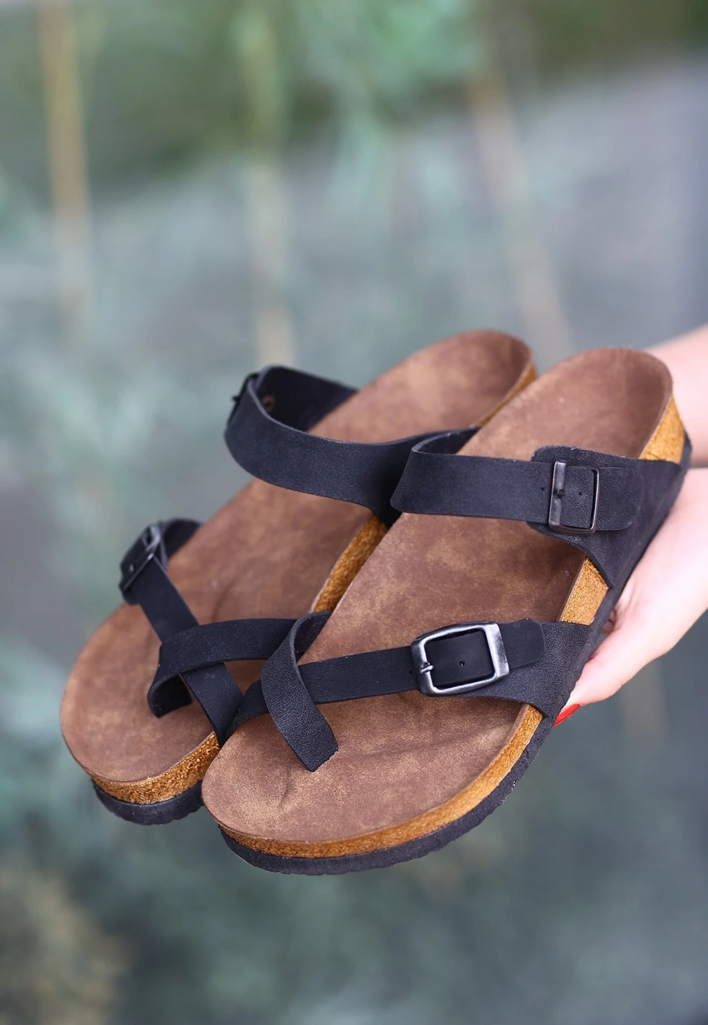 Saide Siyah Cilt Cırt Cırtlı Sandalet