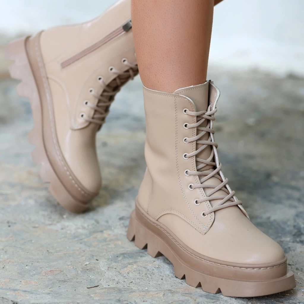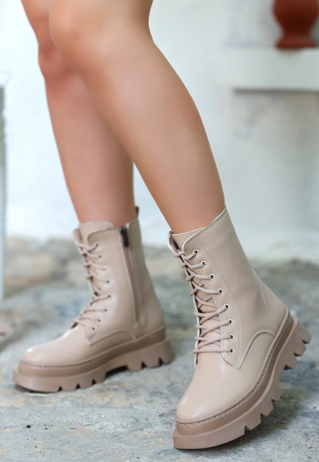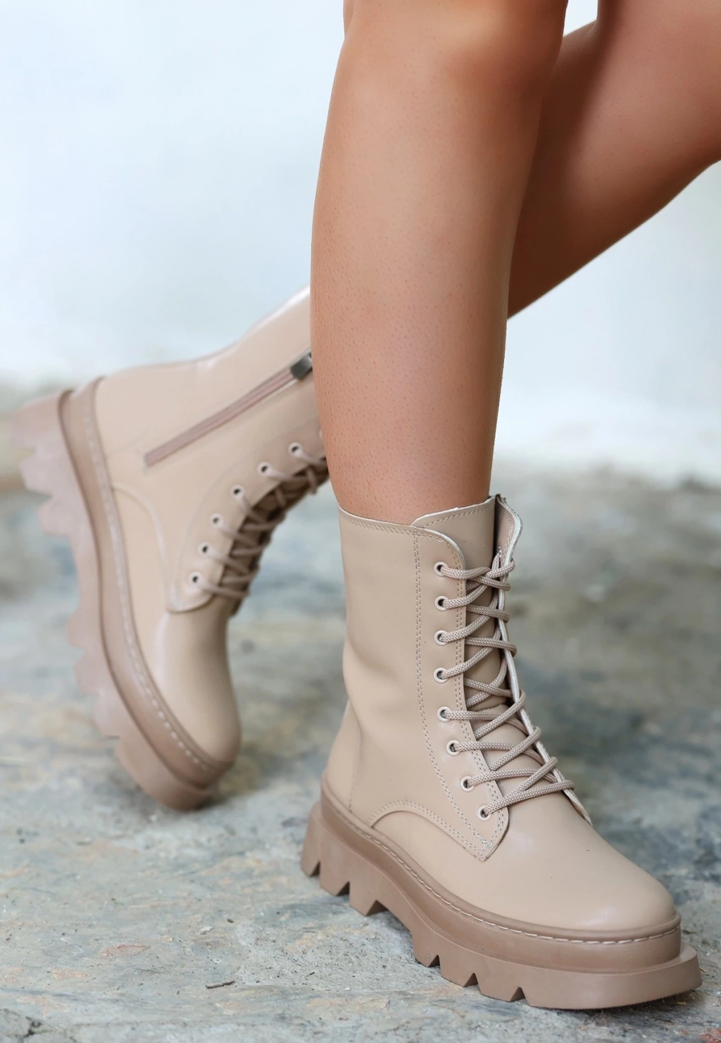 Jones Bej Cilt Bağcıklı Topuklu Bot