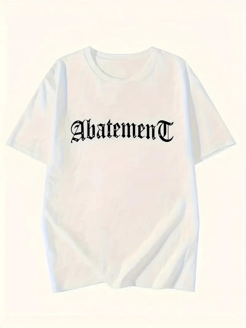 Rahat Bisiklet Yaka Tişört, Yaratıcı Karikatür Baskı - Yumuşak Polyester, Her Mevsim Giyilebilir- Beyaz