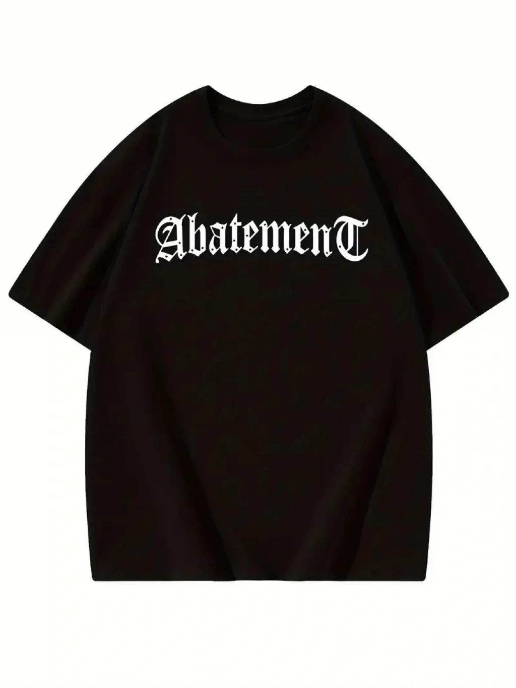 Geniş Kesim Pamuklu Tişört - "GANDHI The Project" Baskılı, Siyah, Rahat Kesim, Kısa Kollu, Günlük Kıyafet, Her Gün Giyilebilecek Tişört- Siyah