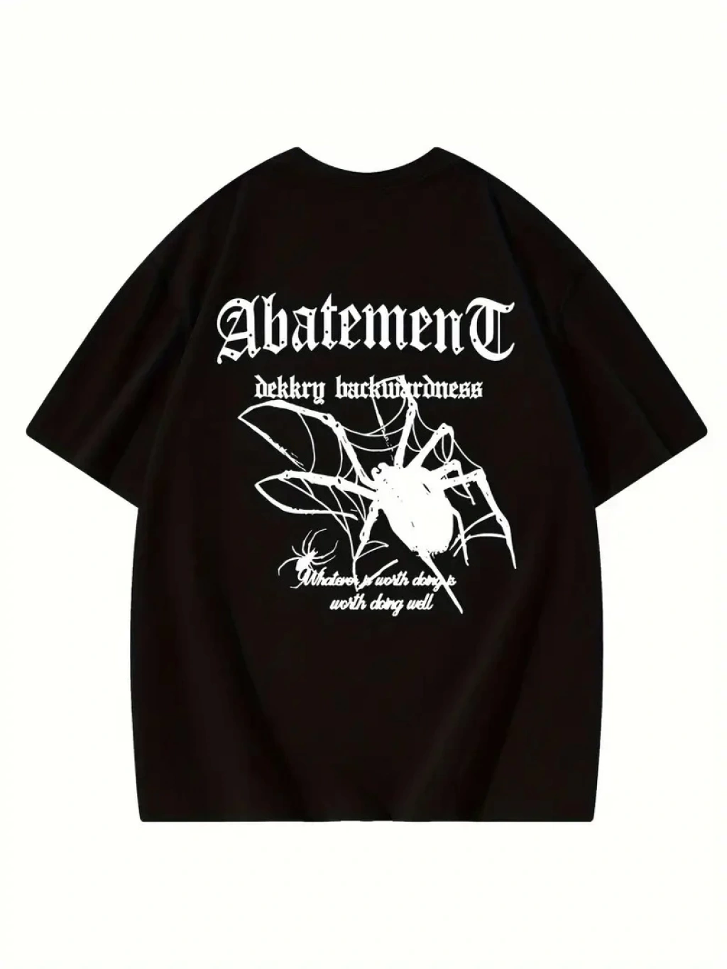 Rahat Bisiklet Yaka Tişört, Yaratıcı Karikatür Baskı - Yumuşak Polyester, Her Mevsim Giyilebilir- Siyah