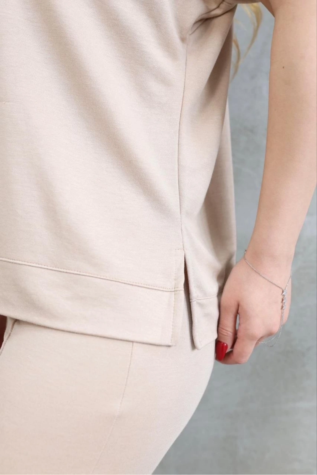 Yakalı Düğmeli Uzun Kollu Gömlek Pantolon ikili Takım - Bej