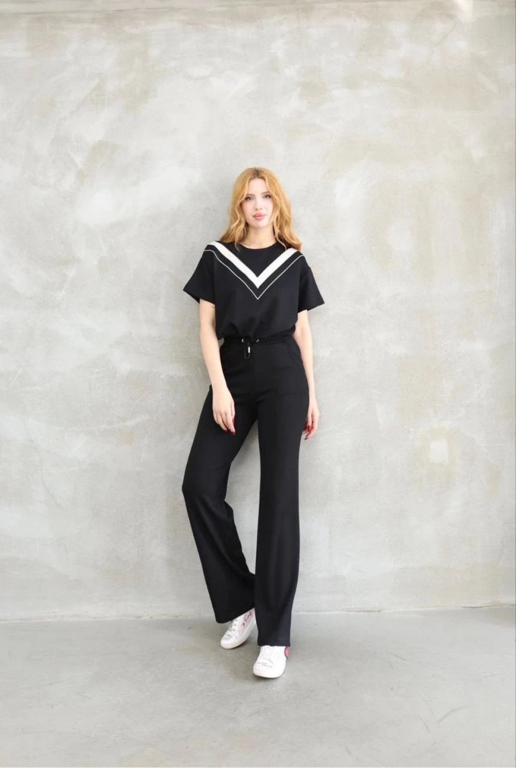 Osy Modal yumuşak dokulu Kumaş Kadın Bisiklet Yaka T-shirt Kısa Şort İkili Takım - Siyah