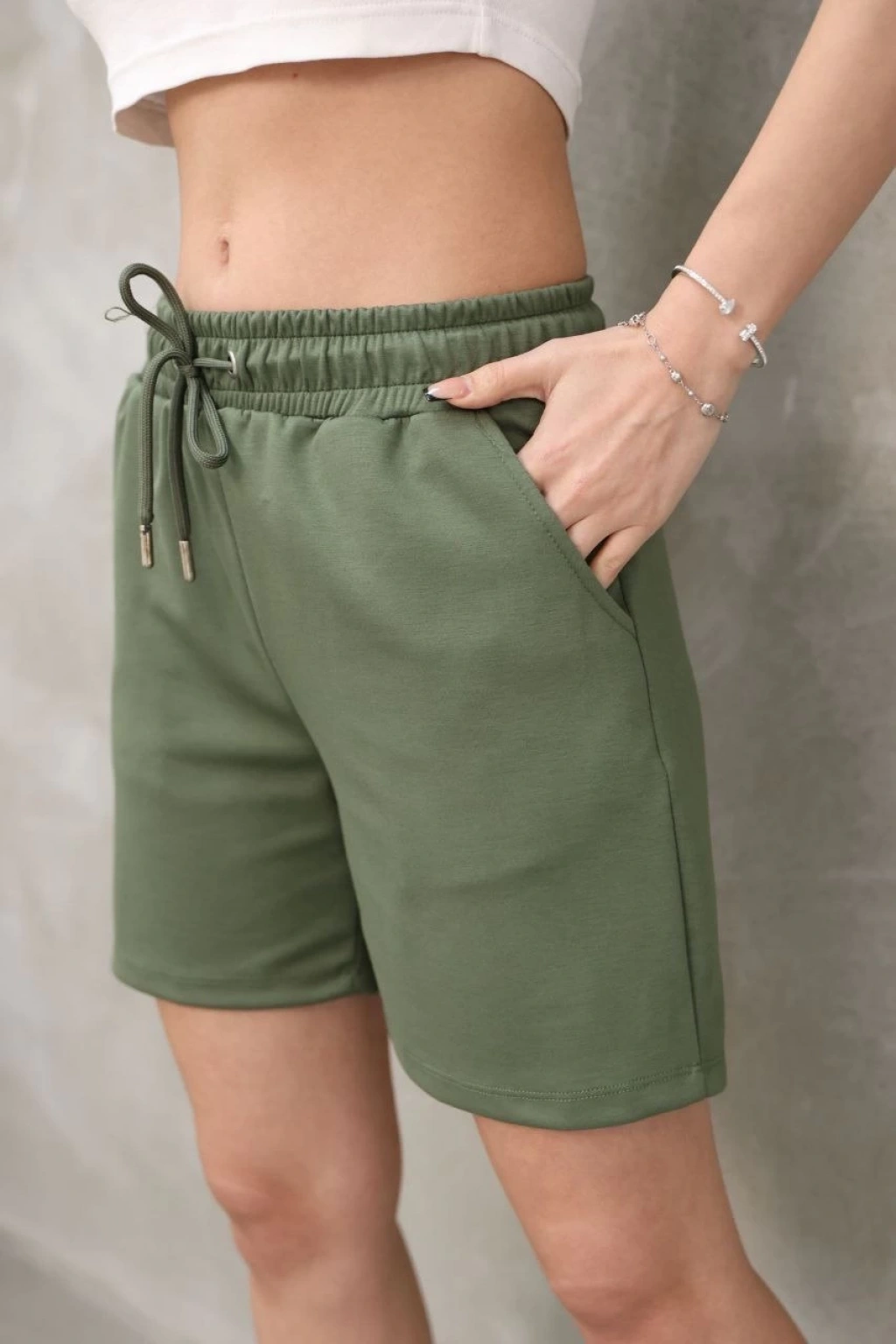 Osy Modal Yumuşak Dokulu Kumaş Kadın Kısa Şort - Haki