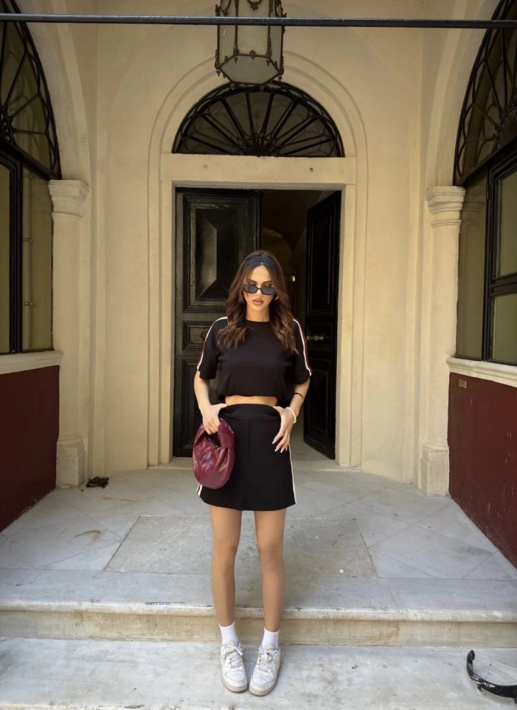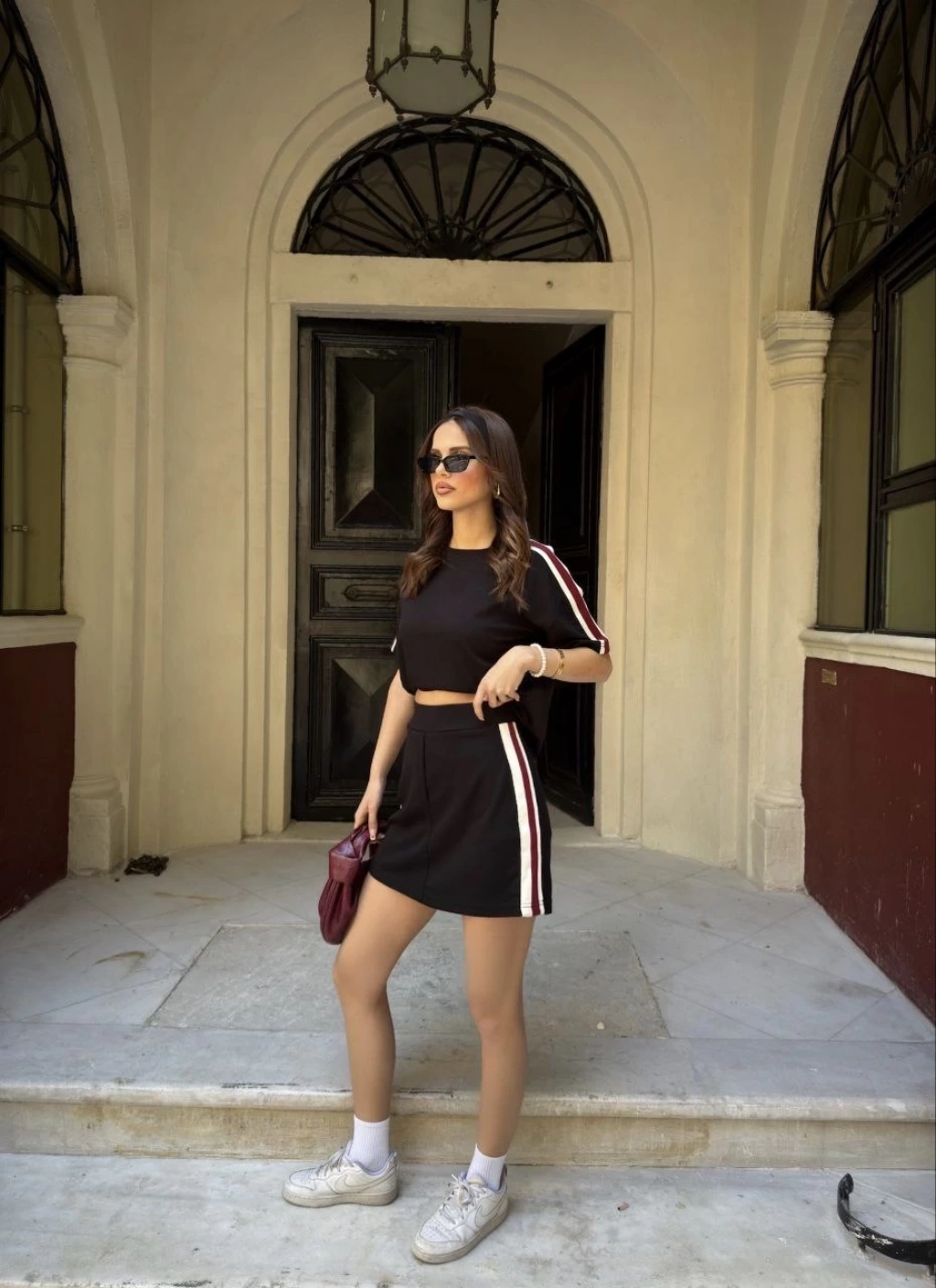 OSY MODAL YUMUŞAK DOKULU KUMAŞ KADIN PARÇALI BİSİKLET YAKA T-SHİRT MİNİ ŞORTLU ETEK İKİLİ TAKIM - FÜME