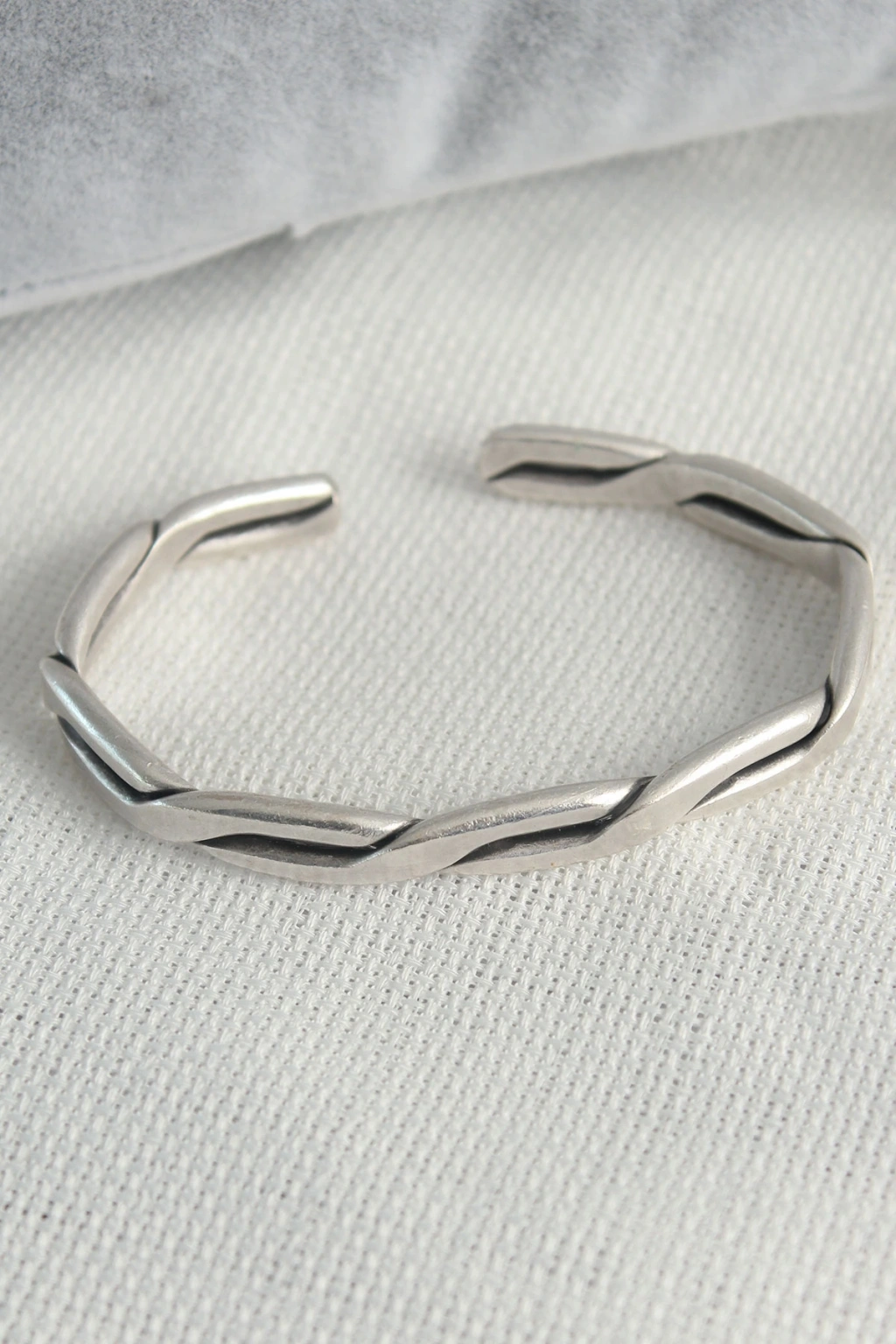 Otantik Gümüş Renk Motif İşleme Plaka Erkek Bileklik