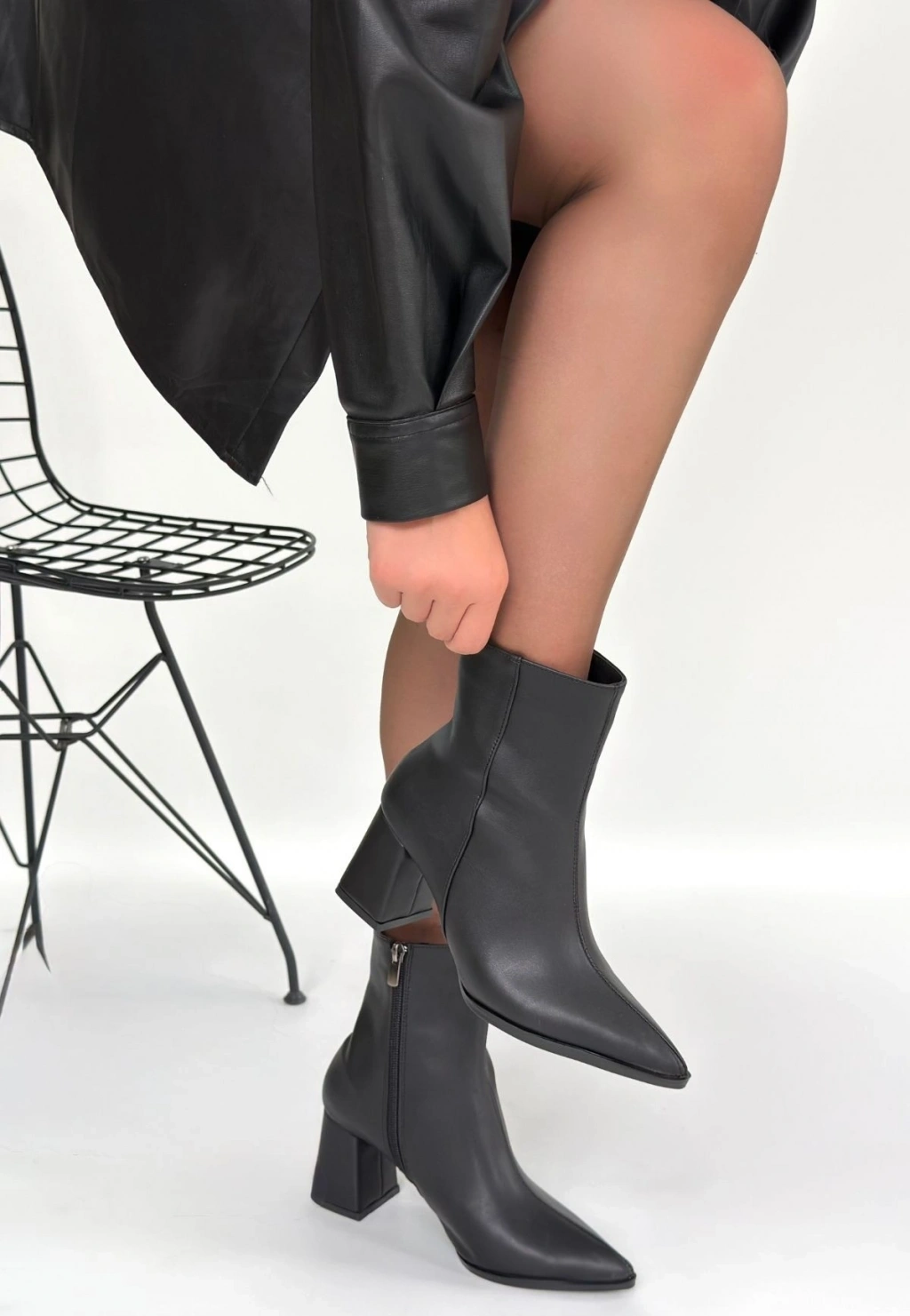 Kanda Siyah Cilt Topuklu Bot
