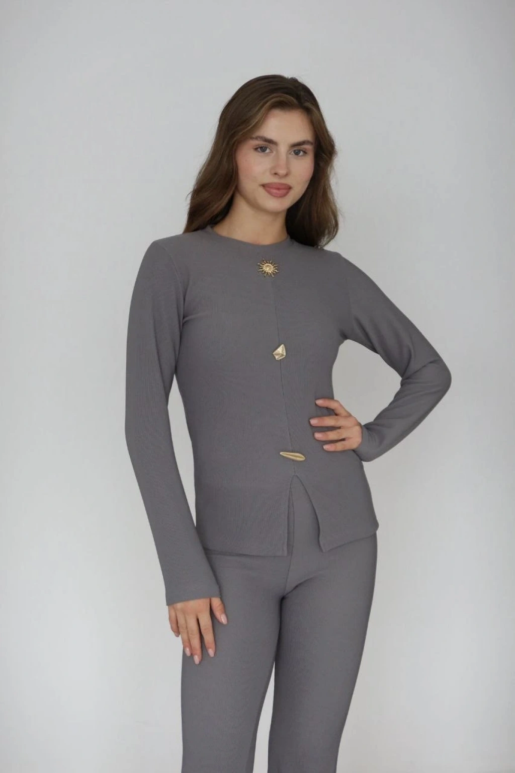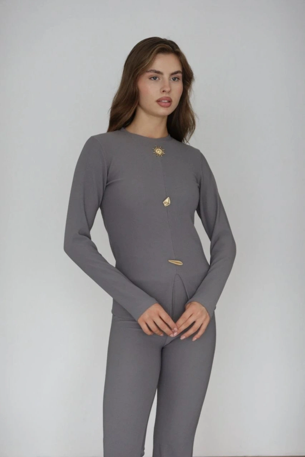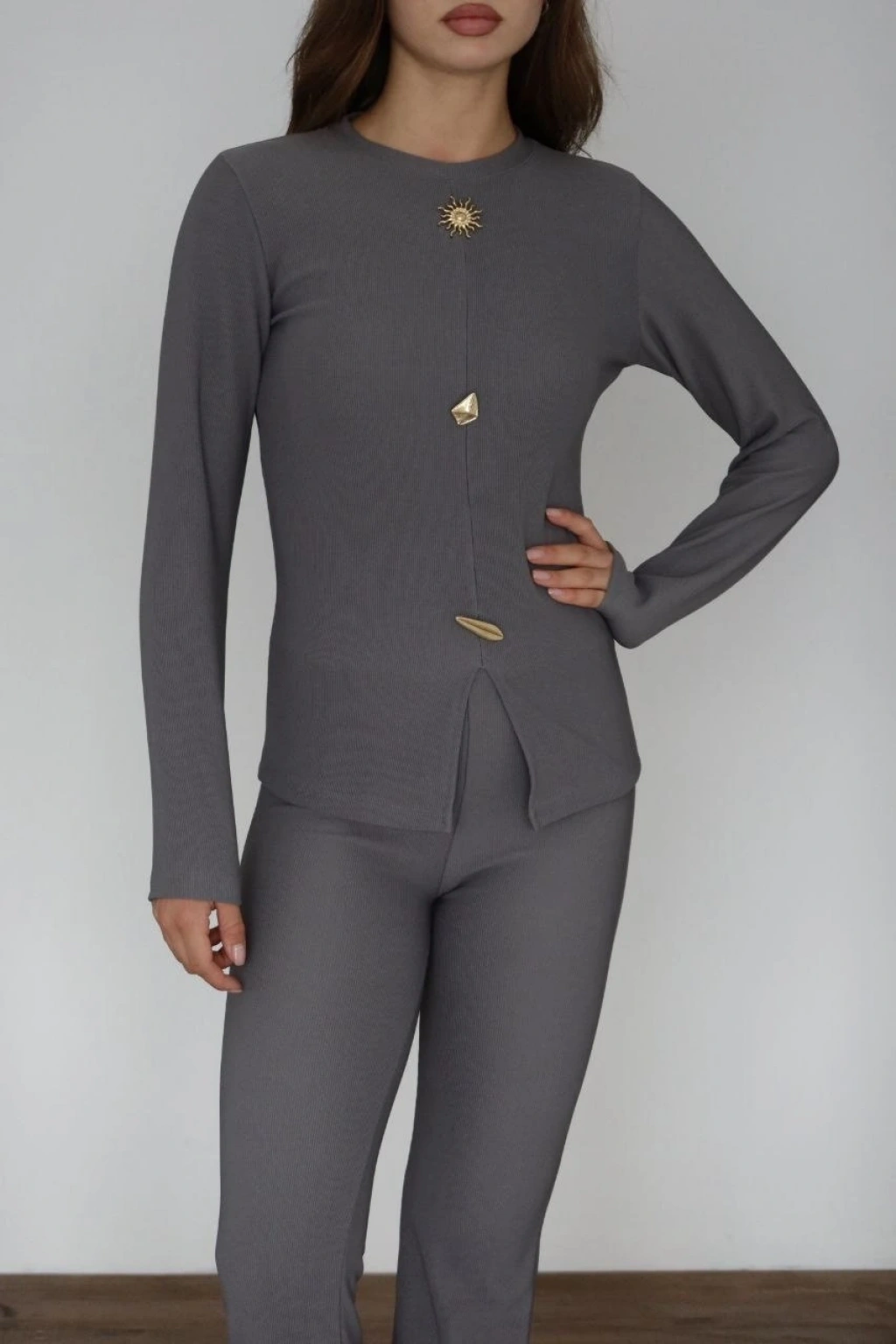3 iplik içi Şardonlu yarım fermuarlı alt üst takım siyah