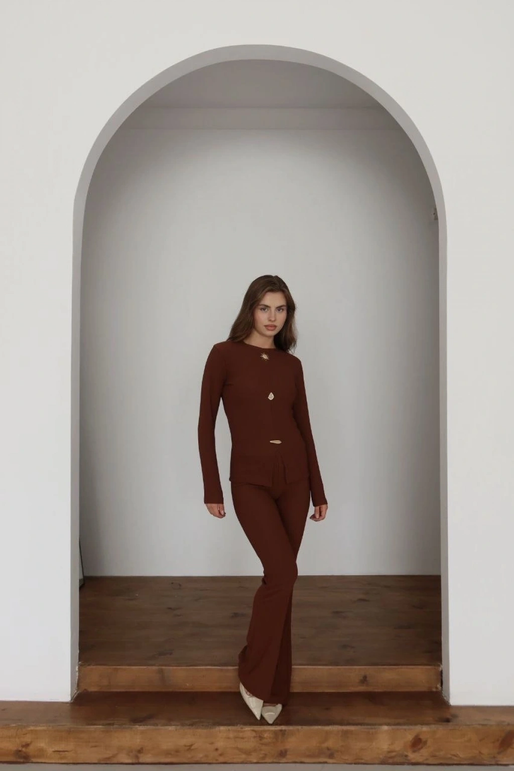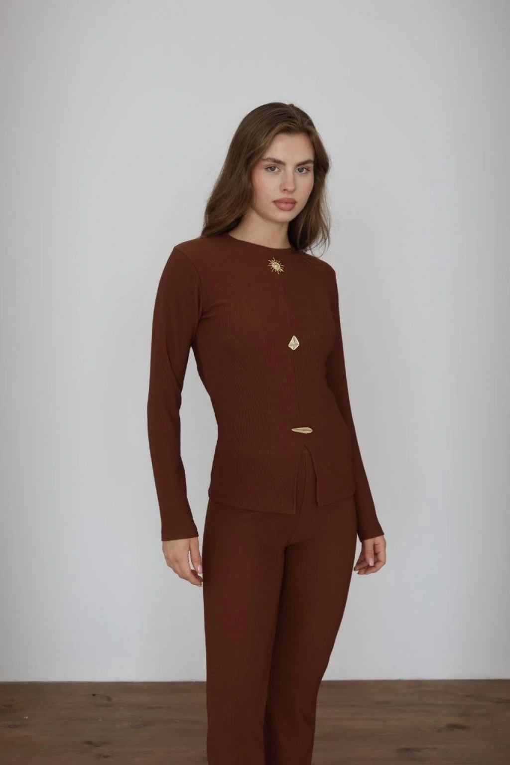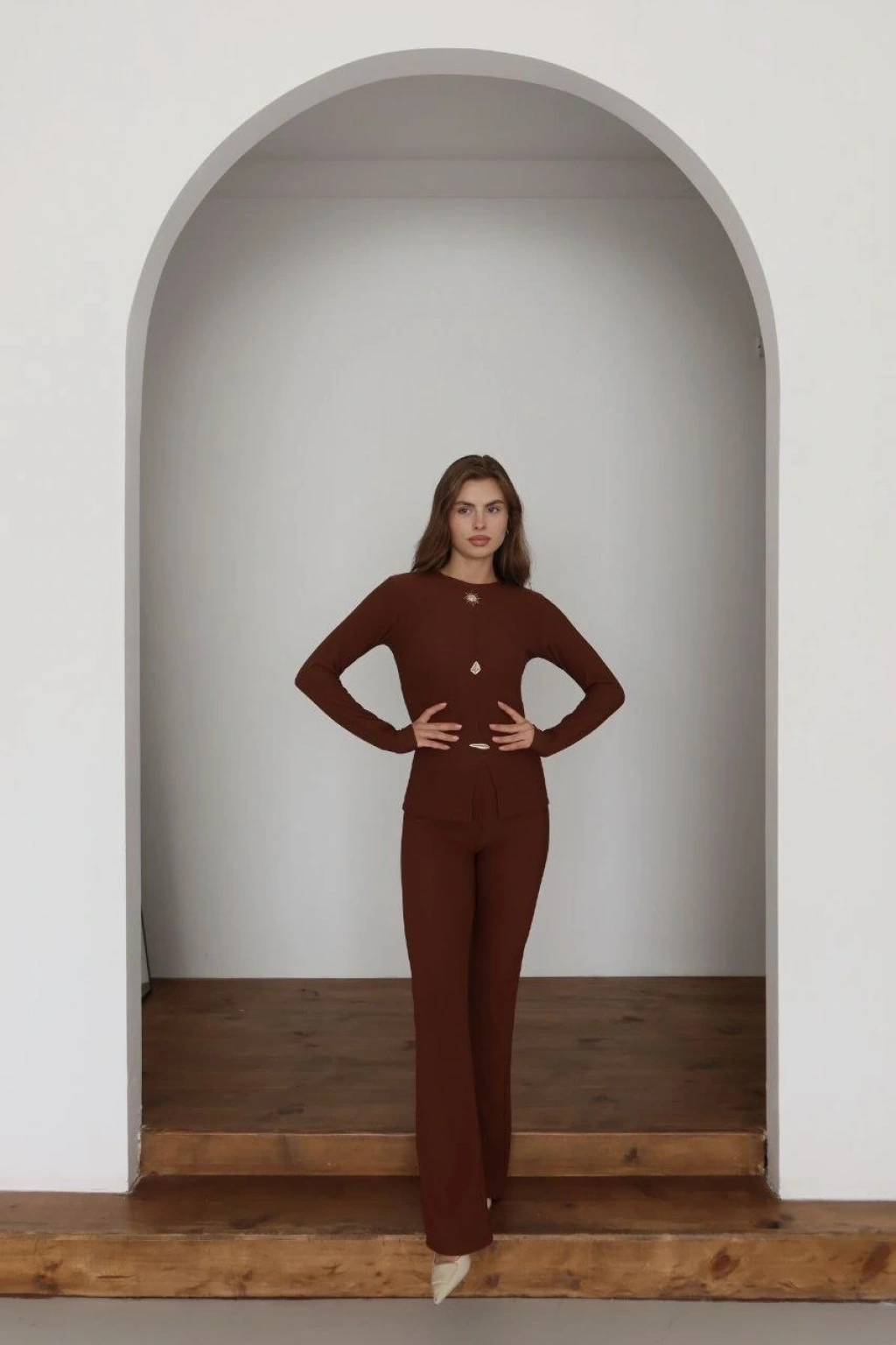 Kollu modal takım kahve