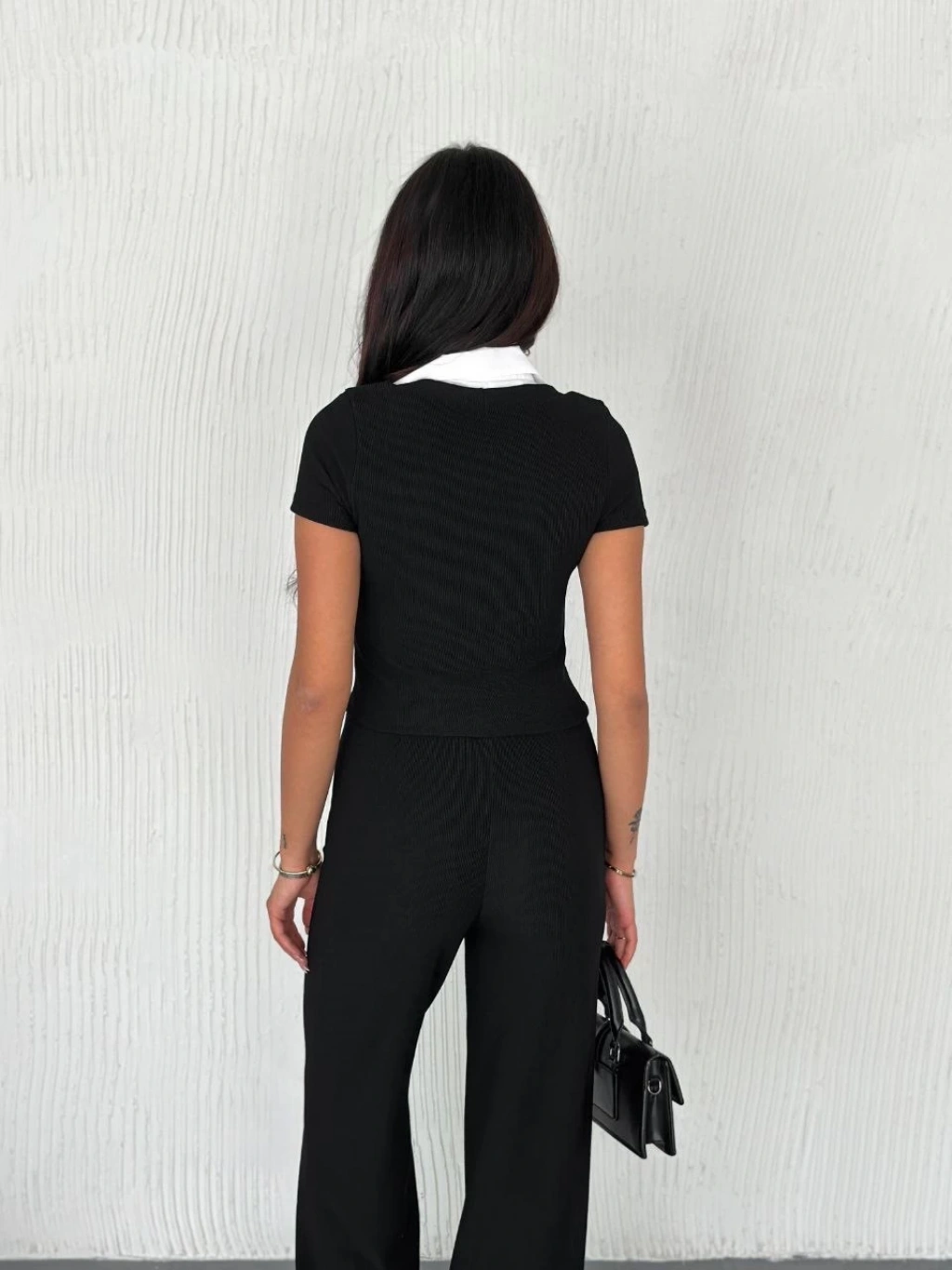 Ottoman kumaşın zarif dokusunu taşıyan bu beyaz gömlek yaka takım, gardırobunuzun vazgeçilmezi olmaya aday! Hem şık hem de rahat tasarımı ile günün her anında şıklığınızı ön plana çıkaracak.