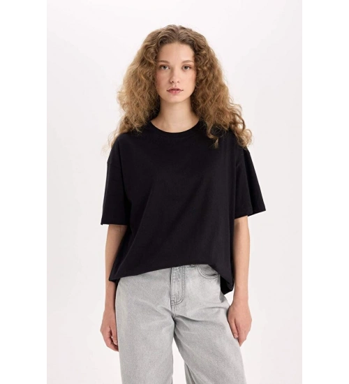 Oversize Fit Kısa Kollu Basic %100 Pamuk Tişört