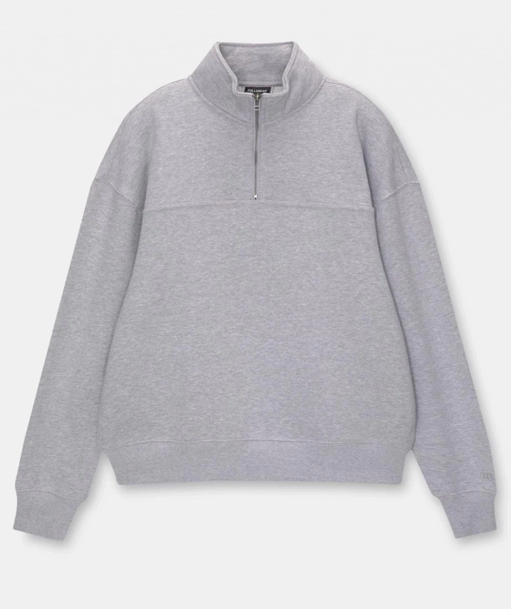 Kadın Yarım Fermuarlı Üç İplik Sweatshirt - Bej