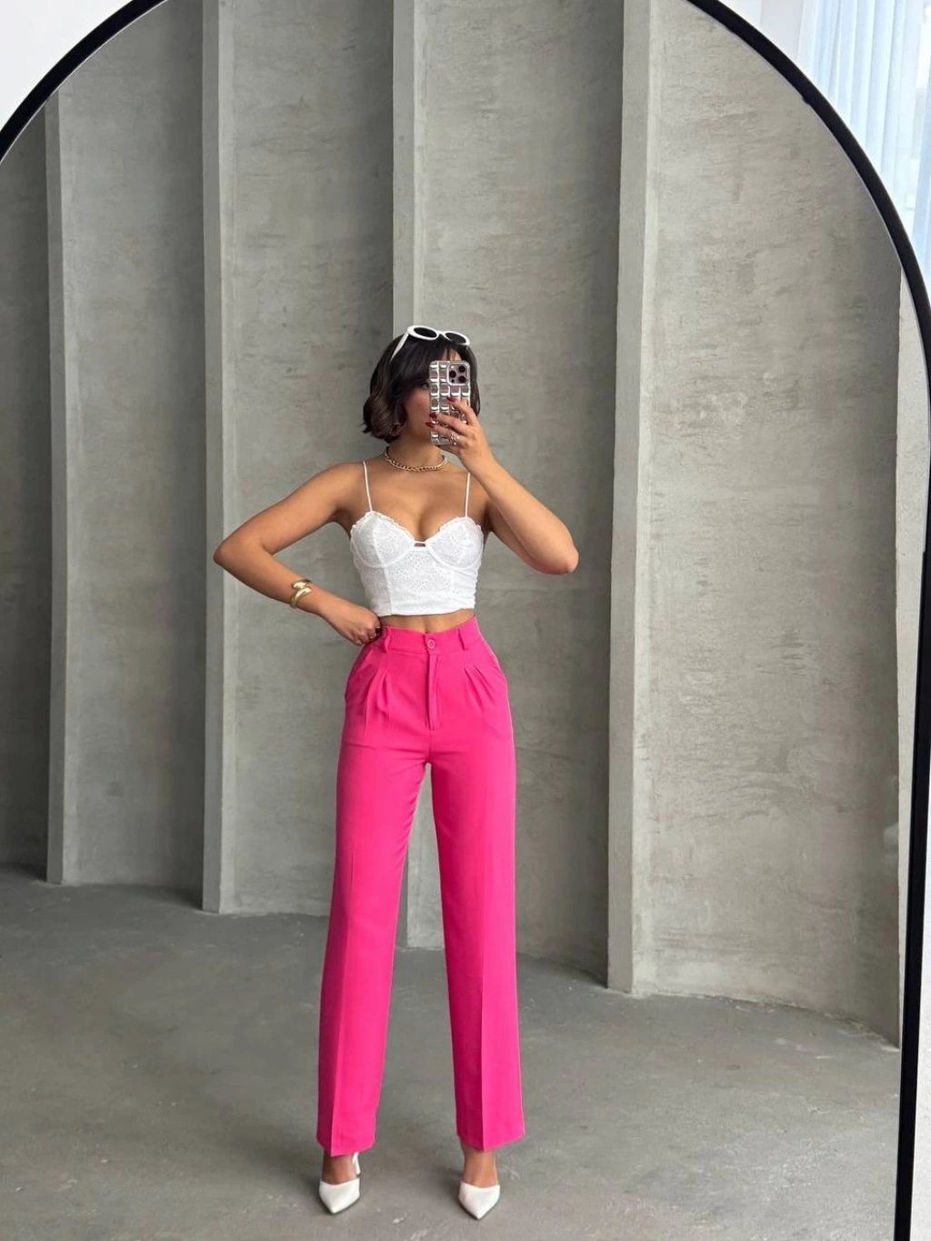 İspanyol yırtmaçlı paça deri pantolon bej hn