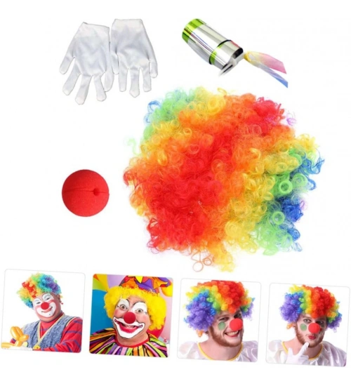 Palyaço Saç Palyaço Burun Palyaço Eldiven Palyaço Sihirli Baston 4 lü Seti