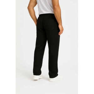 Erkek Keten Pantolon – Cepli, Beli Lastikli ve Bağcıklı, Nefes Alan Rahat Kalıp, Yazlık ve Baharlık Günlük Giyim, Şık & Konforlu Boru Paça Model - Siyah
