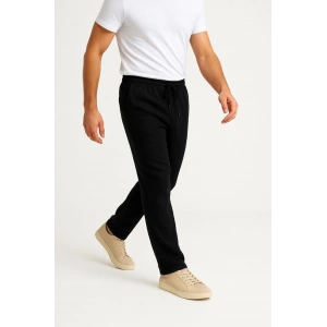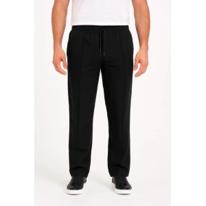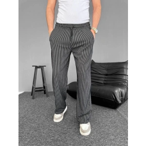 Erkek Cizgili Dokuma Krep Jogger Buggy Pantalon Rahat kalıp - Siyah