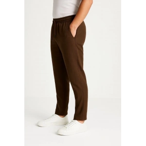 Erkek Diagonel Mikro dokulu Cepli Beli Lastilki Pantolon - Kahverengi