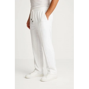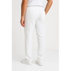Erkek Keten Pantolon – Cepli, Beli Lastikli ve Bağcıklı, Nefes Alan Rahat Kalıp, Yazlık ve Baharlık Günlük Giyim, Şık & Konforlu Boru Paça Model - Beyaz