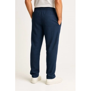 Erkek Keten Pantolon – Cepli, Beli Lastikli ve Bağcıklı, Nefes Alan Rahat Kalıp, Yazlık ve Baharlık Günlük Giyim, Şık & Konforlu Boru Paça Model - Lacivert