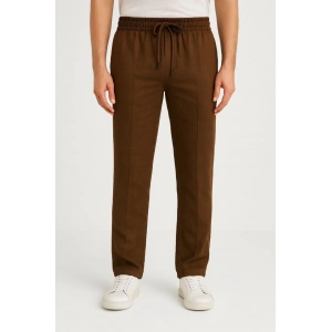 Erkek Keten Pantolon – Cepli, Beli Lastikli ve Bağcıklı, Nefes Alan Rahat Kalıp, Yazlık ve Baharlık Günlük Giyim, Şık & Konforlu Boru Paça Model - Kahverengi