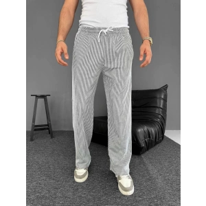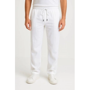 Erkek Cizgili Dokuma Krep Jogger Buggy Pantalon Rahat kalıp - Beyaz