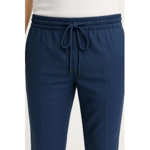 Erkek Cizgili Dokuma Krep Jogger Buggy Pantalon Rahat kalıp - Lacivert