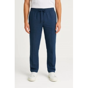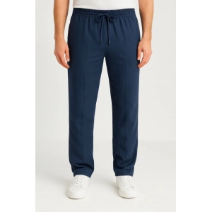 ERKEK CİZGİLİ DOKUMA KREP JOGGER BUGGY PANTALON RAHAT KALIP - LACİVERT