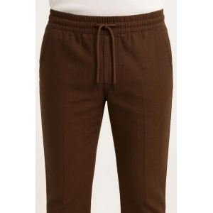 ERKEK KETEN PANTOLON – CEPLİ, BELİ LASTİKLİ VE BAĞCIKLI, NEFES ALAN RAHAT KALIP, YAZLIK VE BAHARLIK GÜNLÜK GİYİM, ŞIK & KONFORLU BORU PAÇA MODEL - KAHVERENGİ