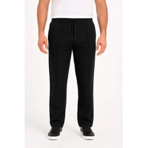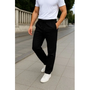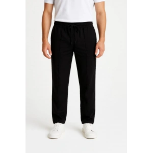 ERKEK CİZGİLİ DOKUMA KREP JOGGER BUGGY PANTALON RAHAT KALIP - SİYAH