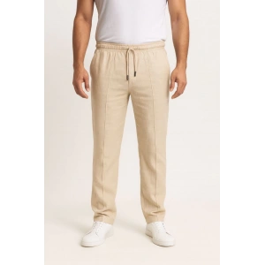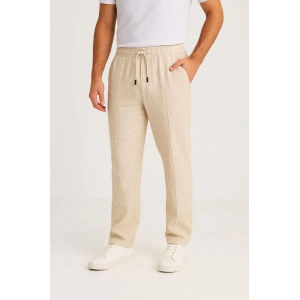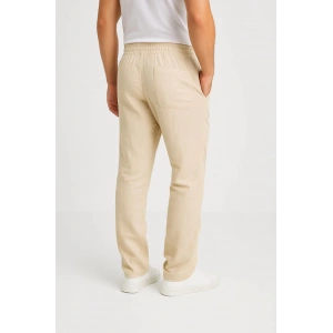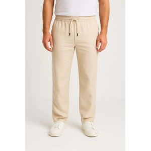 ERKEK KETEN PANTOLON – CEPLİ, BELİ LASTİKLİ VE BAĞCIKLI, NEFES ALAN RAHAT KALIP, YAZLIK VE BAHARLIK GÜNLÜK GİYİM, ŞIK & KONFORLU BORU PAÇA MODEL - BEJ