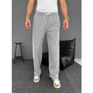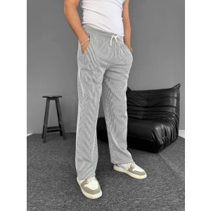 ERKEK CİZGİLİ DOKUMA KREP JOGGER BUGGY PANTALON RAHAT KALIP - BEYAZ