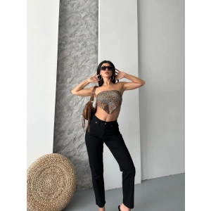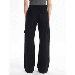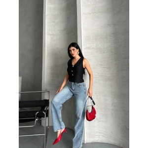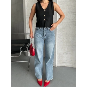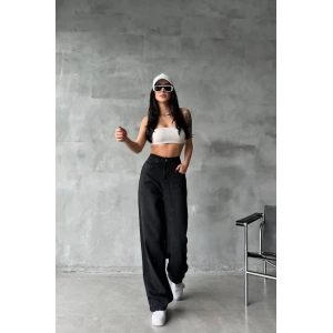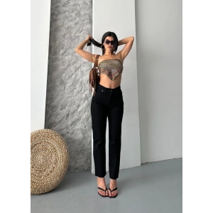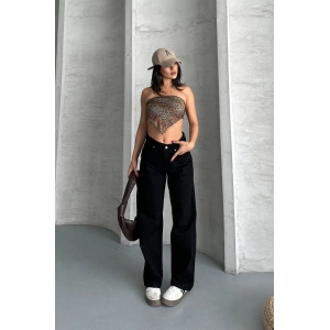 Palazzo straight enzim süper taş yıkama jeans pantolon siyah d2008