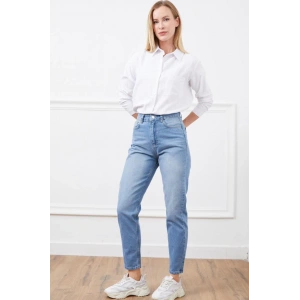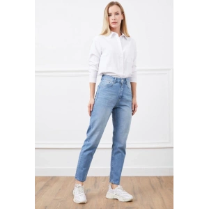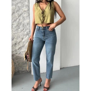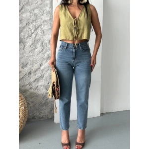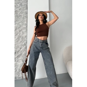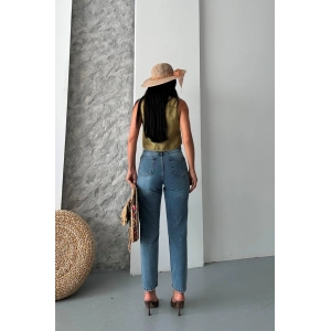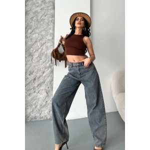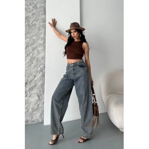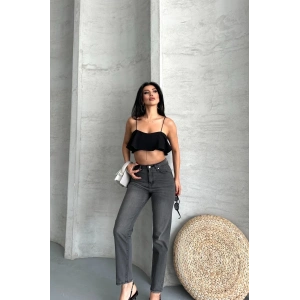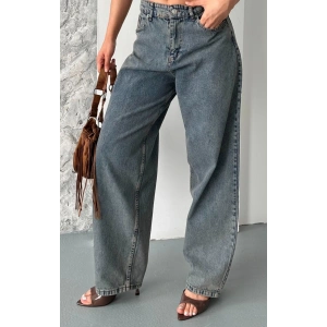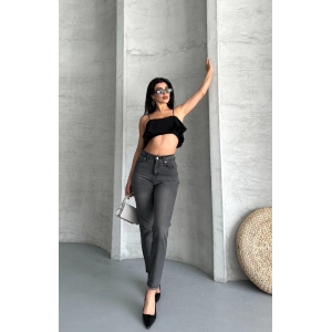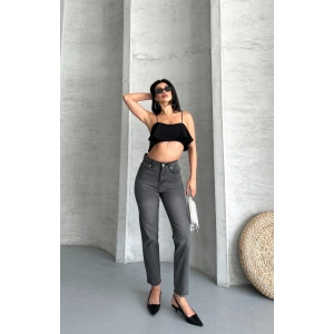 Mom fit enzim taş yıkama jeans pantolon füme d2006