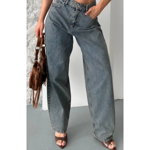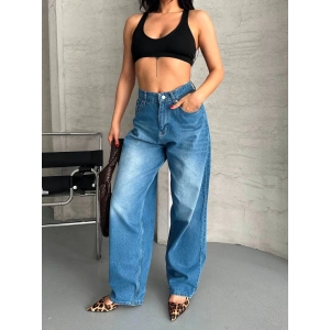 Baggy kar yıkama orta mavi jeans pantolon d2007