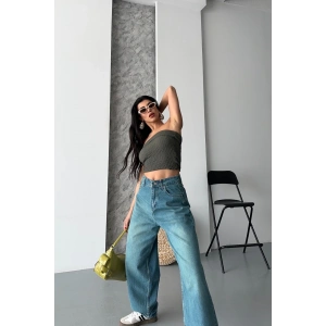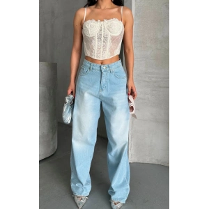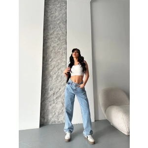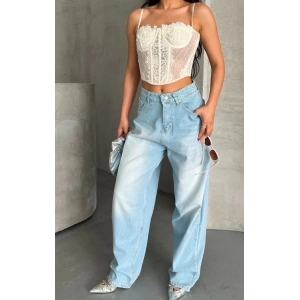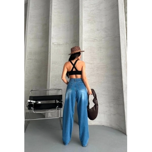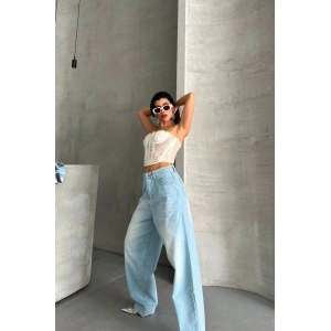 Palazzo bıyık kar yıkama buz mavi jeans pantolon d2008
