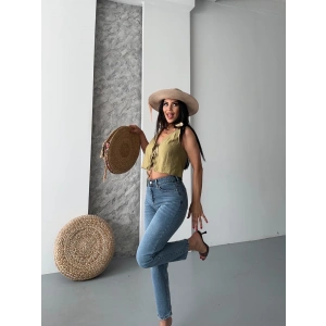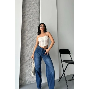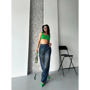 Palazzo süper taş enzim tint yıkama koyu lacivert jeans pantolon d2008