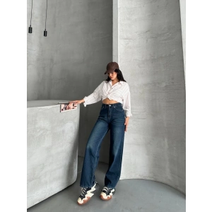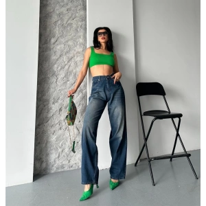 Palazzo bıyık enzim yıkama jeans pantolon koyu mavi d2008