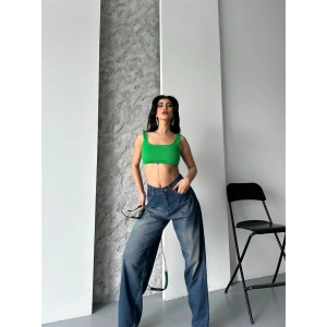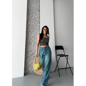 Baggy taş enzim bıyık yıkama jeans pantolon yeşil tint d2007