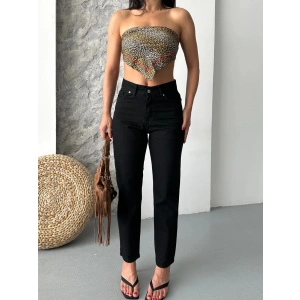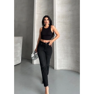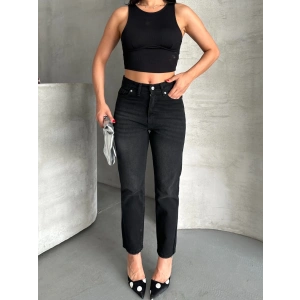Mom fit enzim taş yıkama jeans pantolon siyah d2006