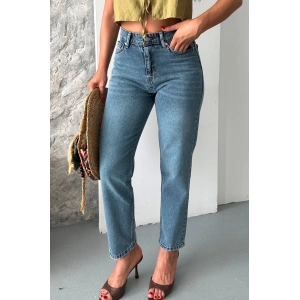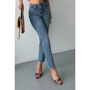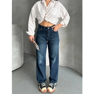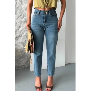 Mom fit bıyık kar yıkama jeans pantolon koyu mavi d2006