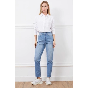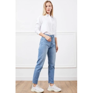 Mom fit kar yıkama bıyık detaylı jeans pantolon d2006