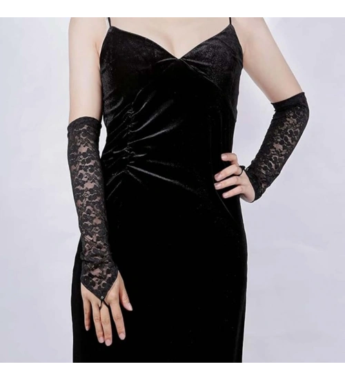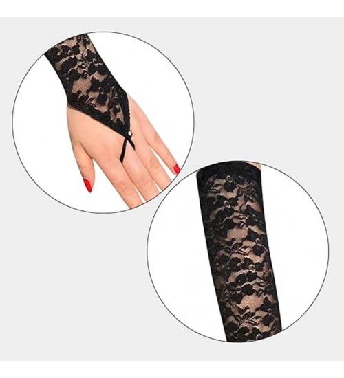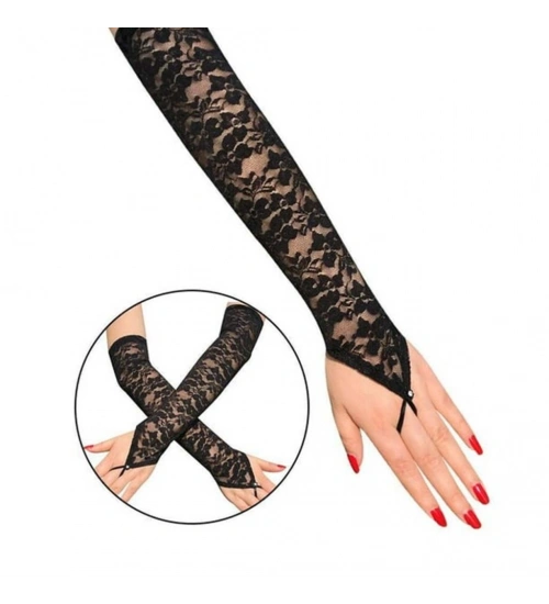 Parmak Askılı Zarif Gece Şıklığı Dantel Eldiven 40 cm