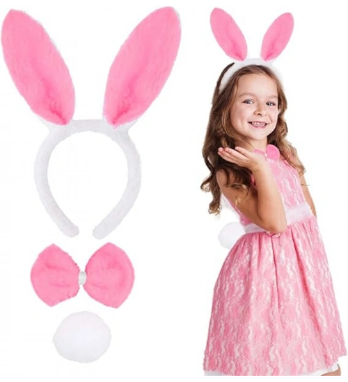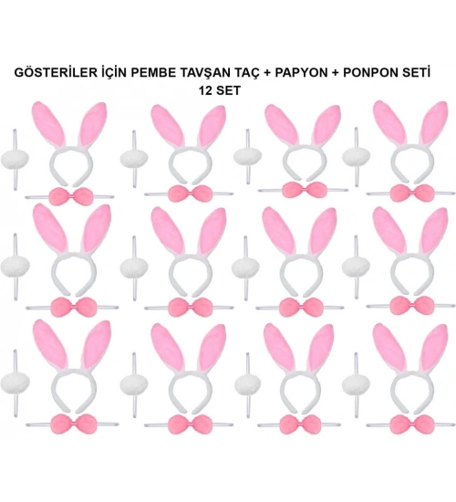 Pembe Tavşan Kostüm Seti – Taç, Papyon, Ponpon (12’li Paket)