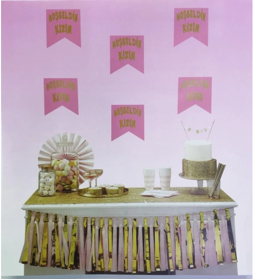 Pembe Üzeri Altın Hoşgeldin Kızım Flama Süs